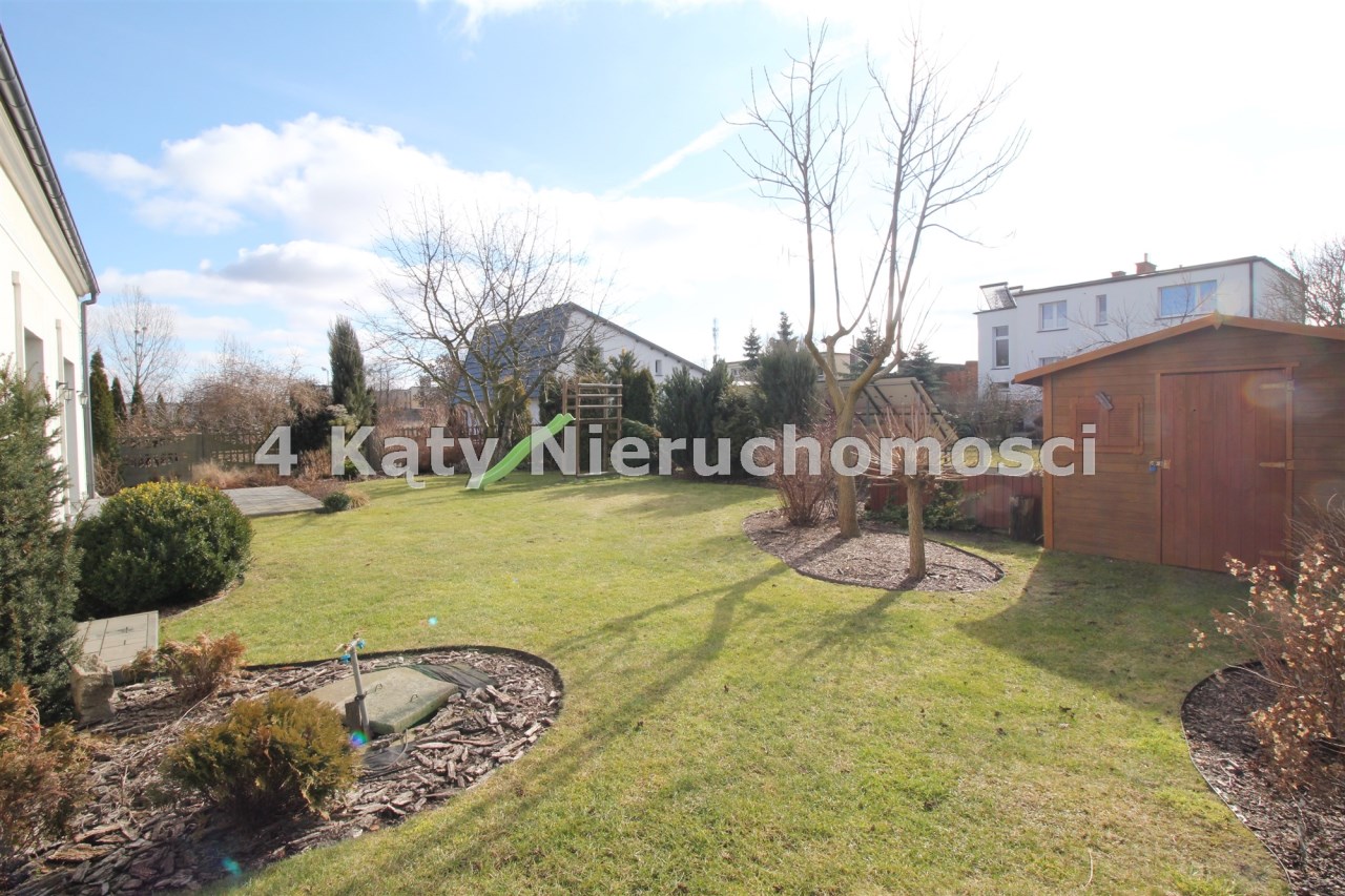 Ogród obsadzony roślinnością i zagospodarowany, co sprzyja odpoczynkowi i rekreacji. Wygospodarowano również przestrzeń na przydomowy ogródek warzywny i miejsce zabaw dla najmłodszych.