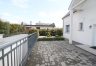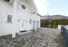 Podjazd utwardzony kostką brukową, całość ogrodzona z bramą zasilaną elektrycznie.