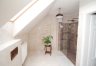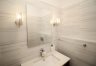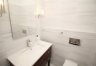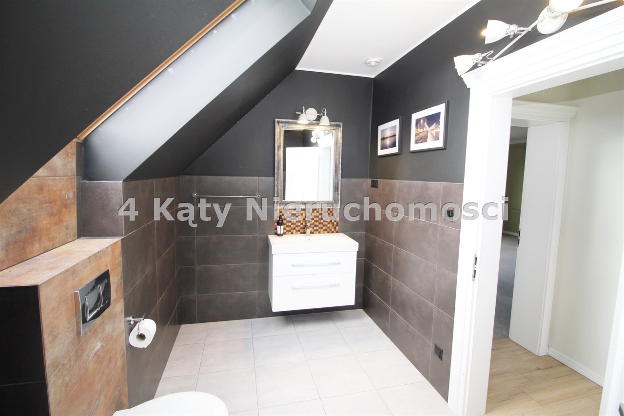 Łazienki oraz toaleta na parterze wykończone zostały wysokiej jakości glazurę oraz wyposażone w armaturę sanitarną.