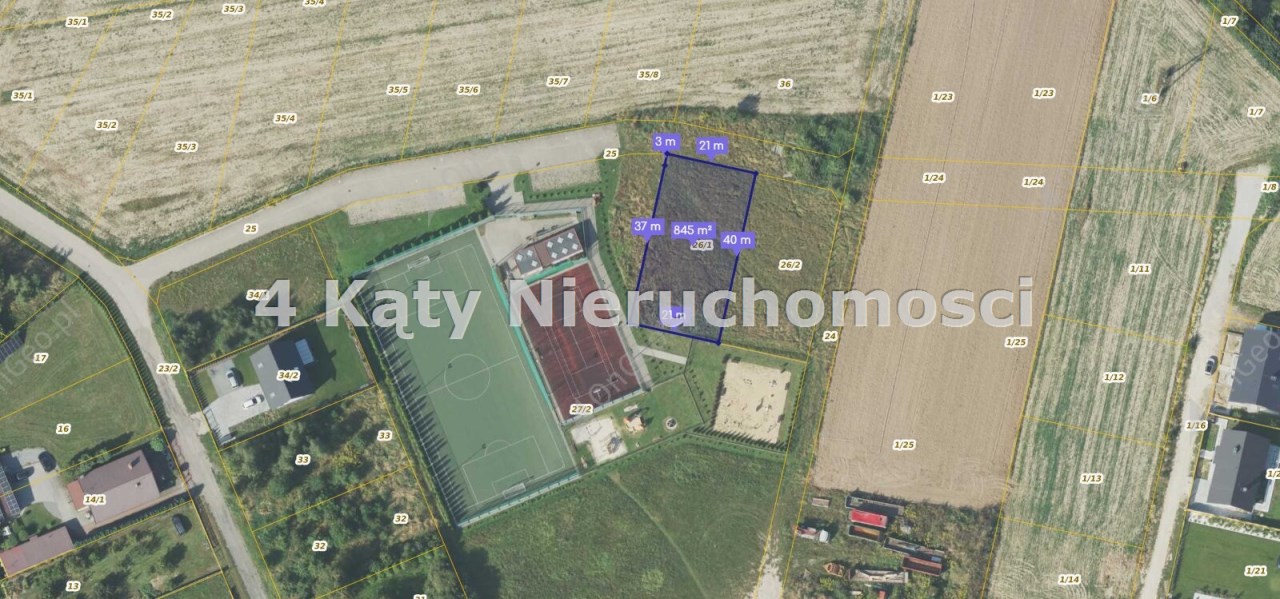 Działka położona blisko centrum miasta na osiedlu domów jednorodzinnych. W bezpośrednim sąsiedztwie znajduje się kort tenisowy i siłownia zewnętrzna.