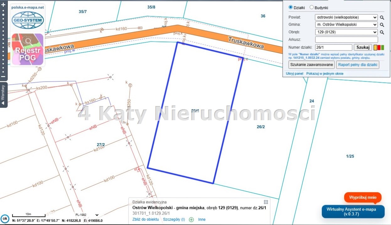 Oferujemy na sprzedaż działkę budowlaną położoną w Ostrowie Wielkopolskim przy ul. Truskawkowej.