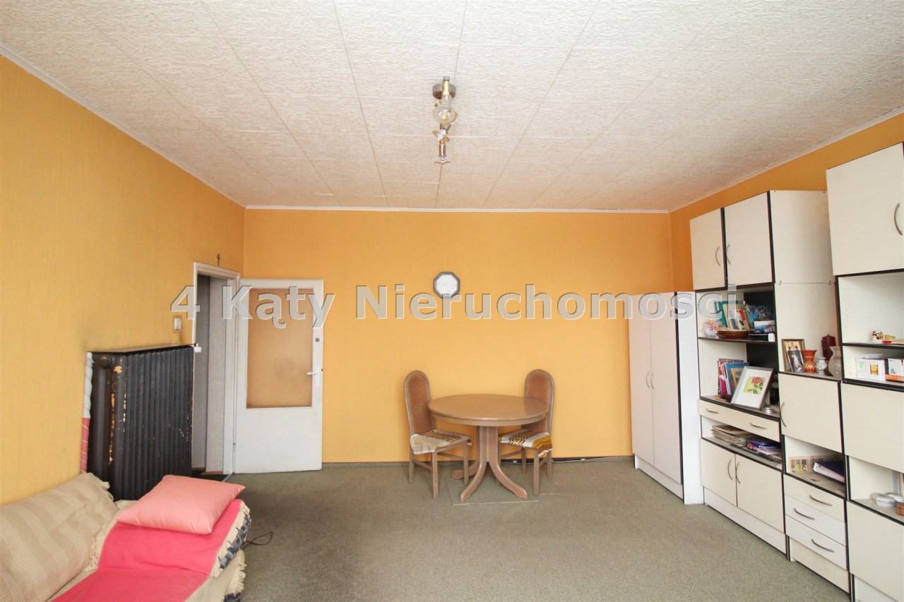Okna PCV (2 okna wyposażone w rolety zewnętrzne). Na podłogach znajdują się parkiet drewniany oraz wykładziny.