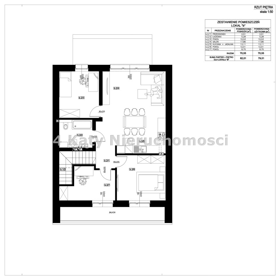 Lokal o pow. użytkowej 69,05 położony jest na I piętrze budynku dwulokalowego.
