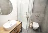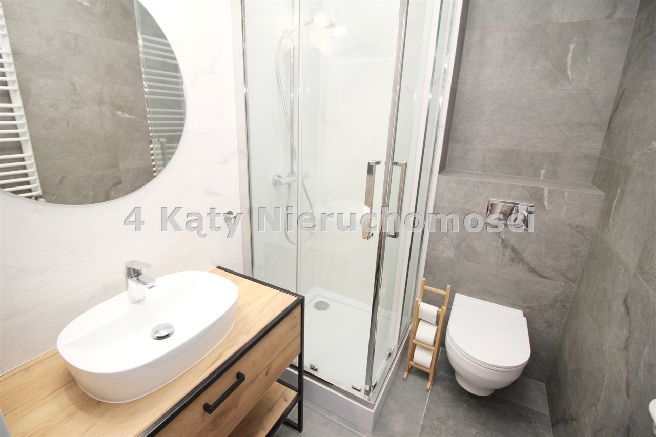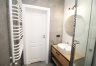 Łazienka funkcjonalnie urządzona z kabiną prysznicową.